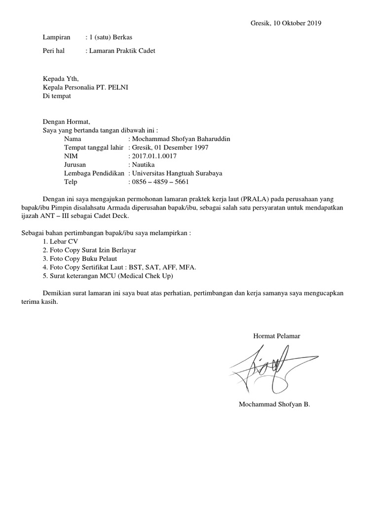 Contoh surat lamaran di pelni. We did not find results for: Check spelling or type a new query. Maybe you would like to learn more about one of these?